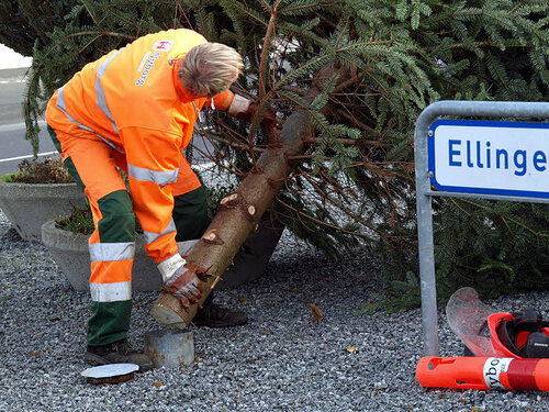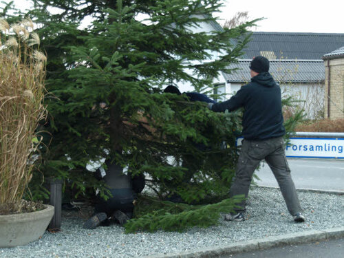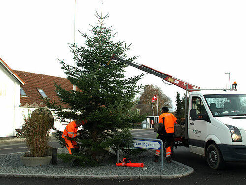 Nyborg Kommune satte Juletræet op på Trekanten i Ellinge den 22. november 2016.