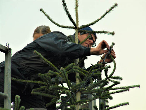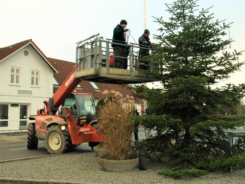 Juletræet fik sat lyskæder på lørdag den 26. november.