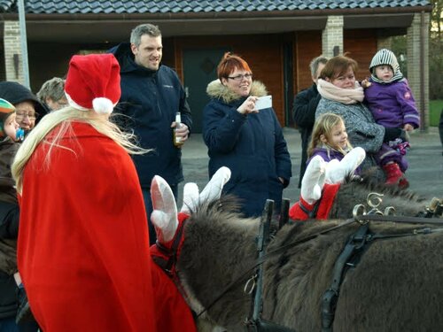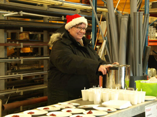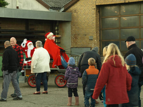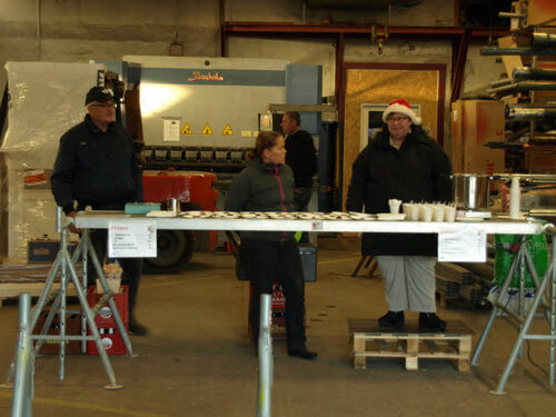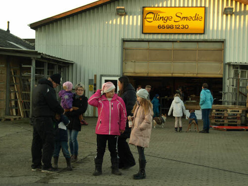 Der var dækket op med varm glögg og æbleskiver i hallen hos Ellinge Smedie.