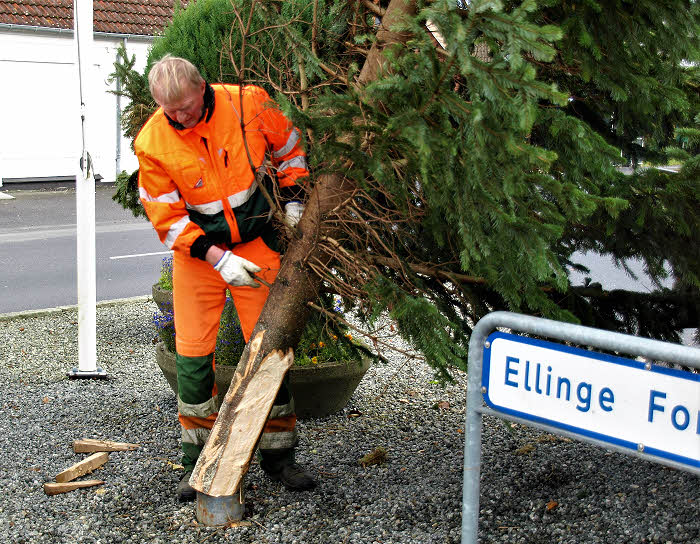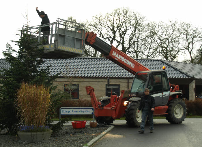 Nyborg Kommune satte Juletræet op på Trekanten i Ellinge den 15. november 2017.