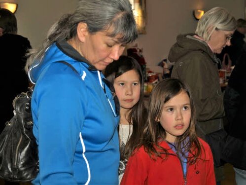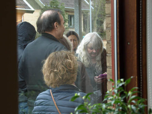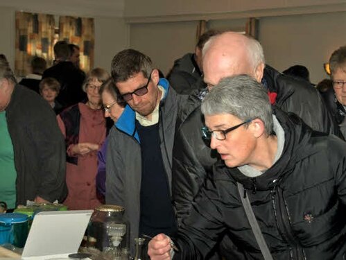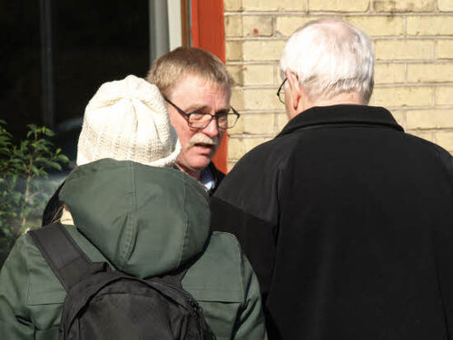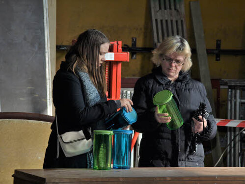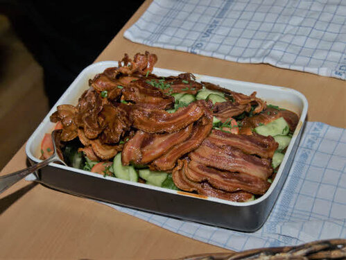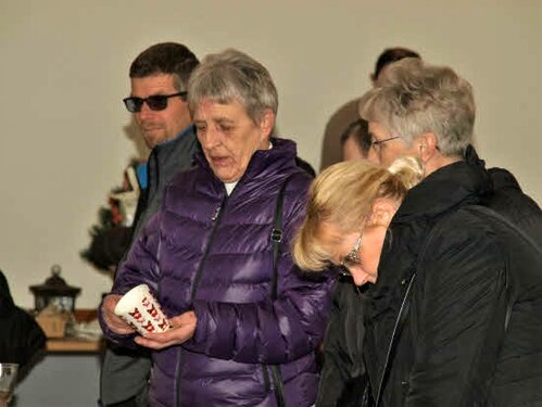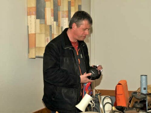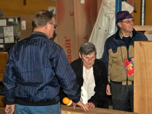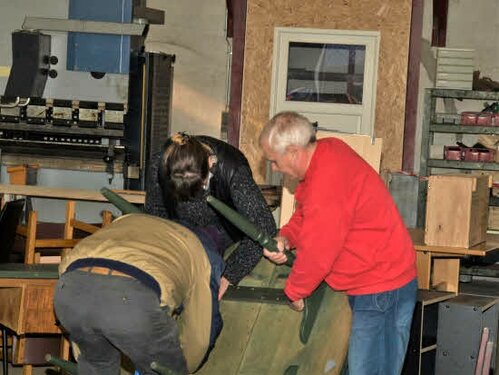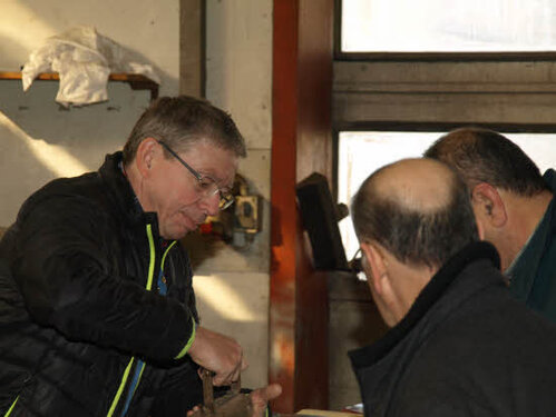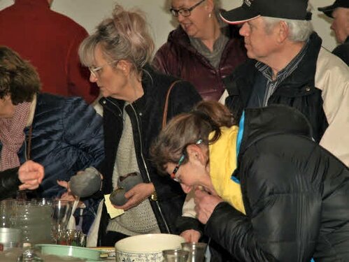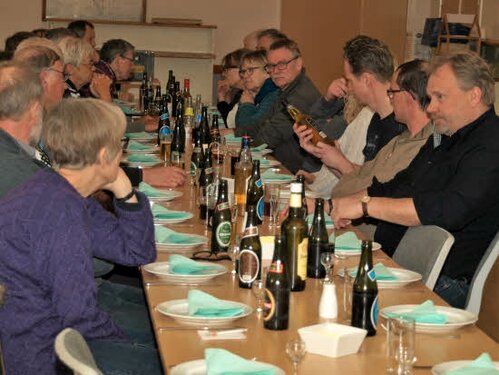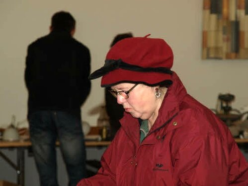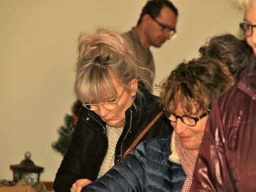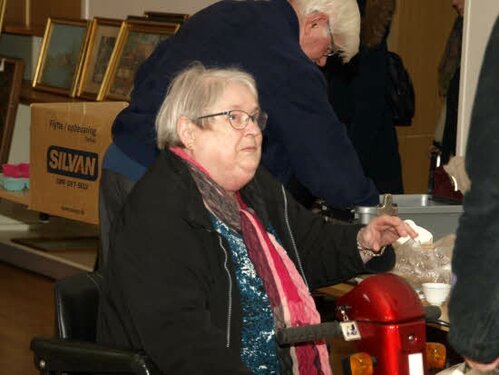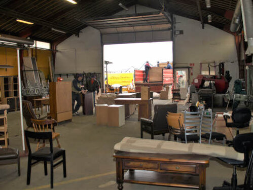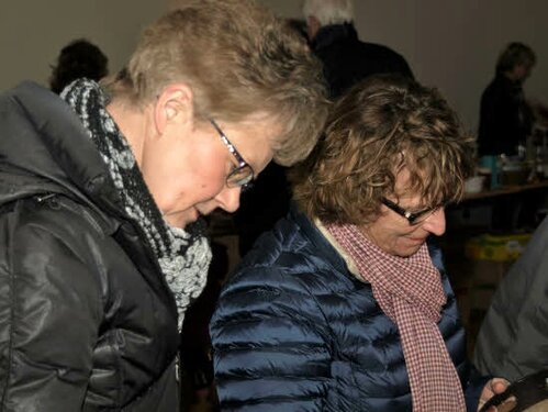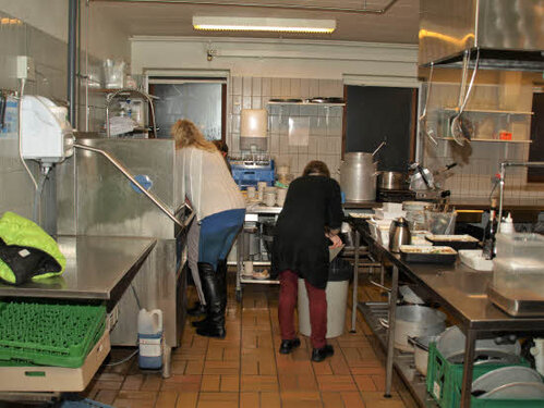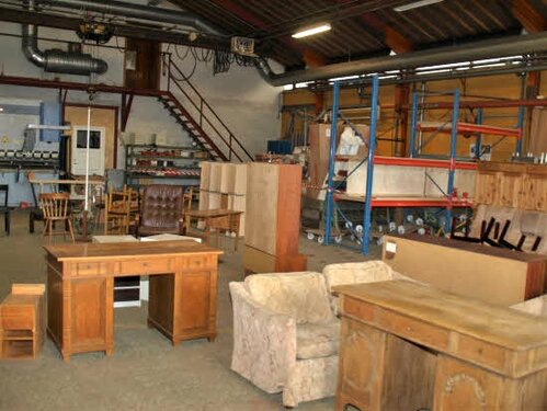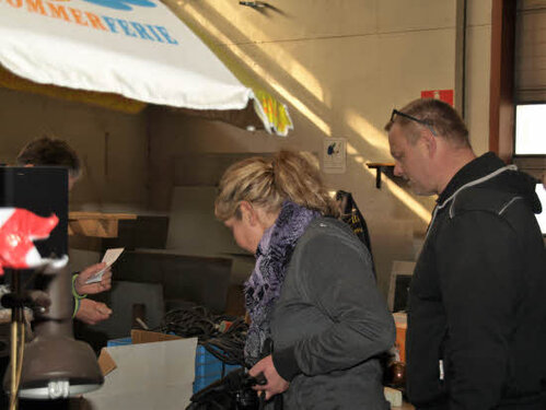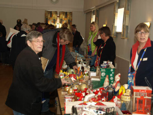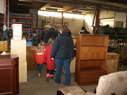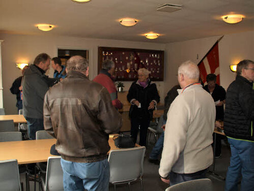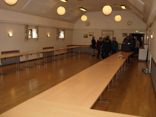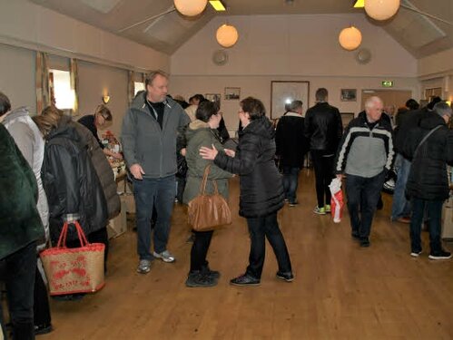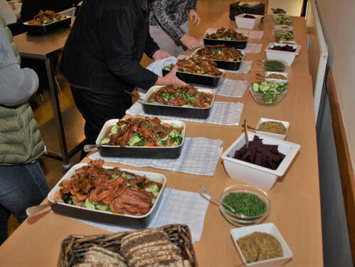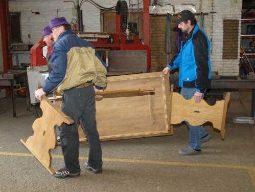 Lørdag kom bestyrelsen og frivillige og stillede op på bordene i forsamlings-huset, og en masse møbler blev sat frem i smedens hal.