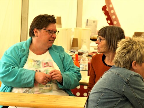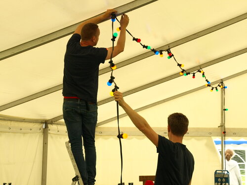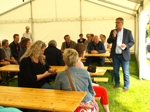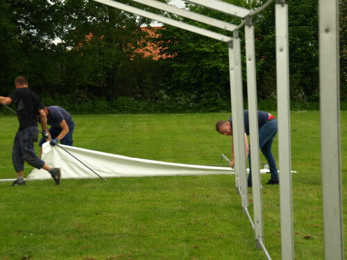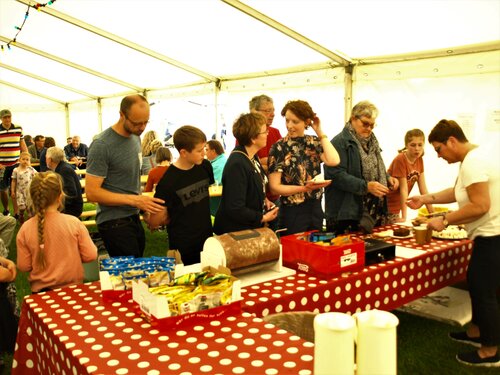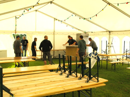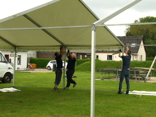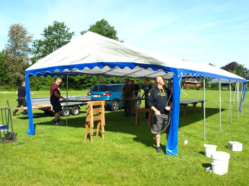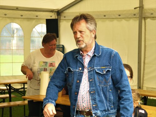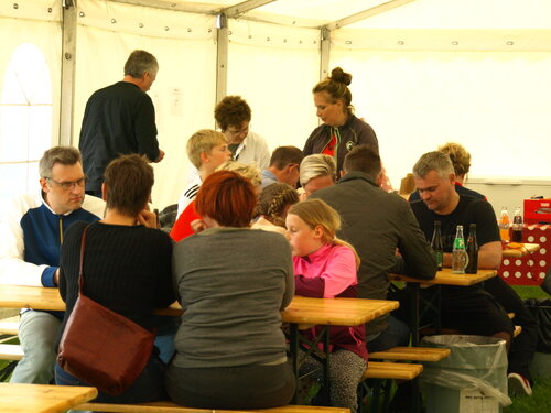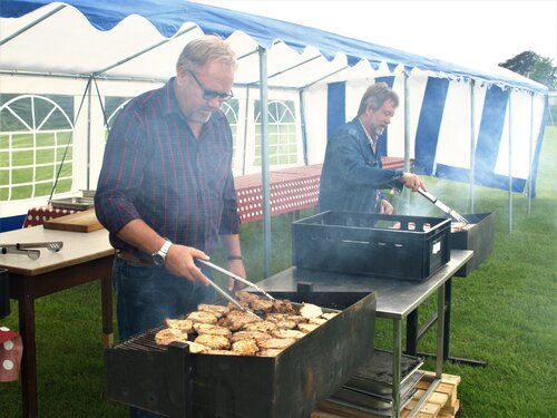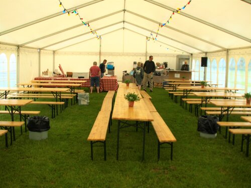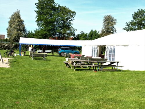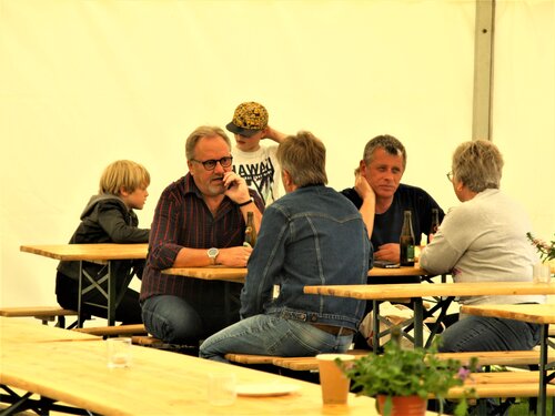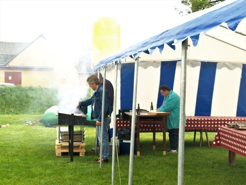 Vejret var knap så solrigt og varmt som sidste år, men der blev alligevel hygget i teltet og udenfor og humøret var højt hos alle.